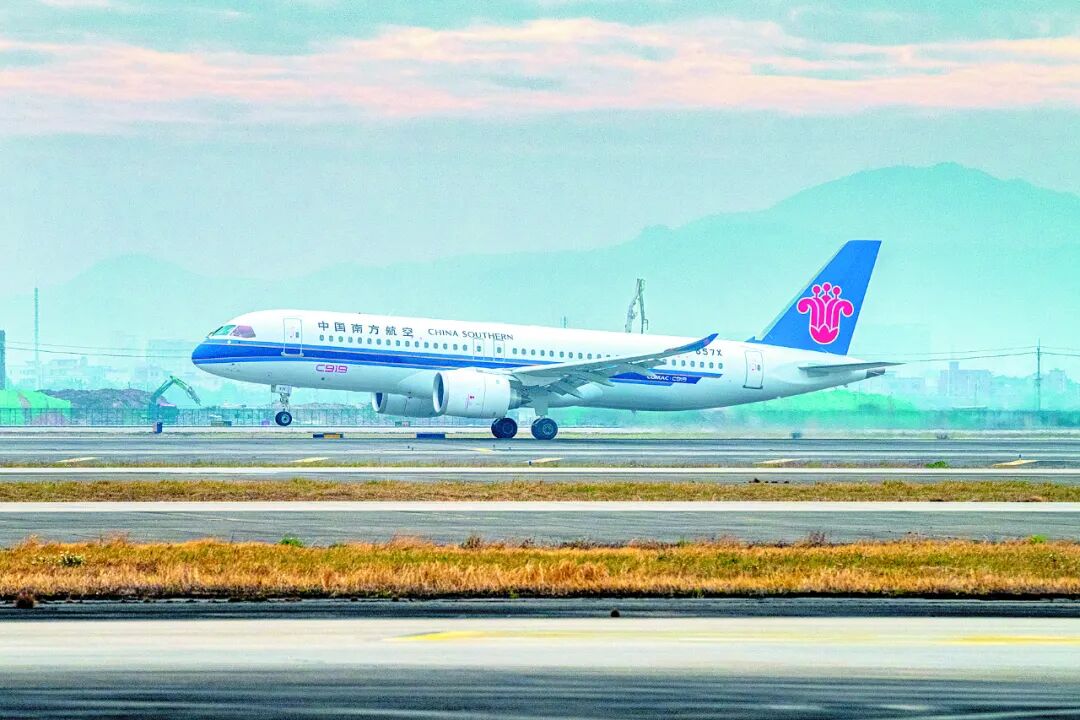 图为一架南航C919国产大飞机在广州白云国际机场起飞。 新华社记者 王瑞平 摄